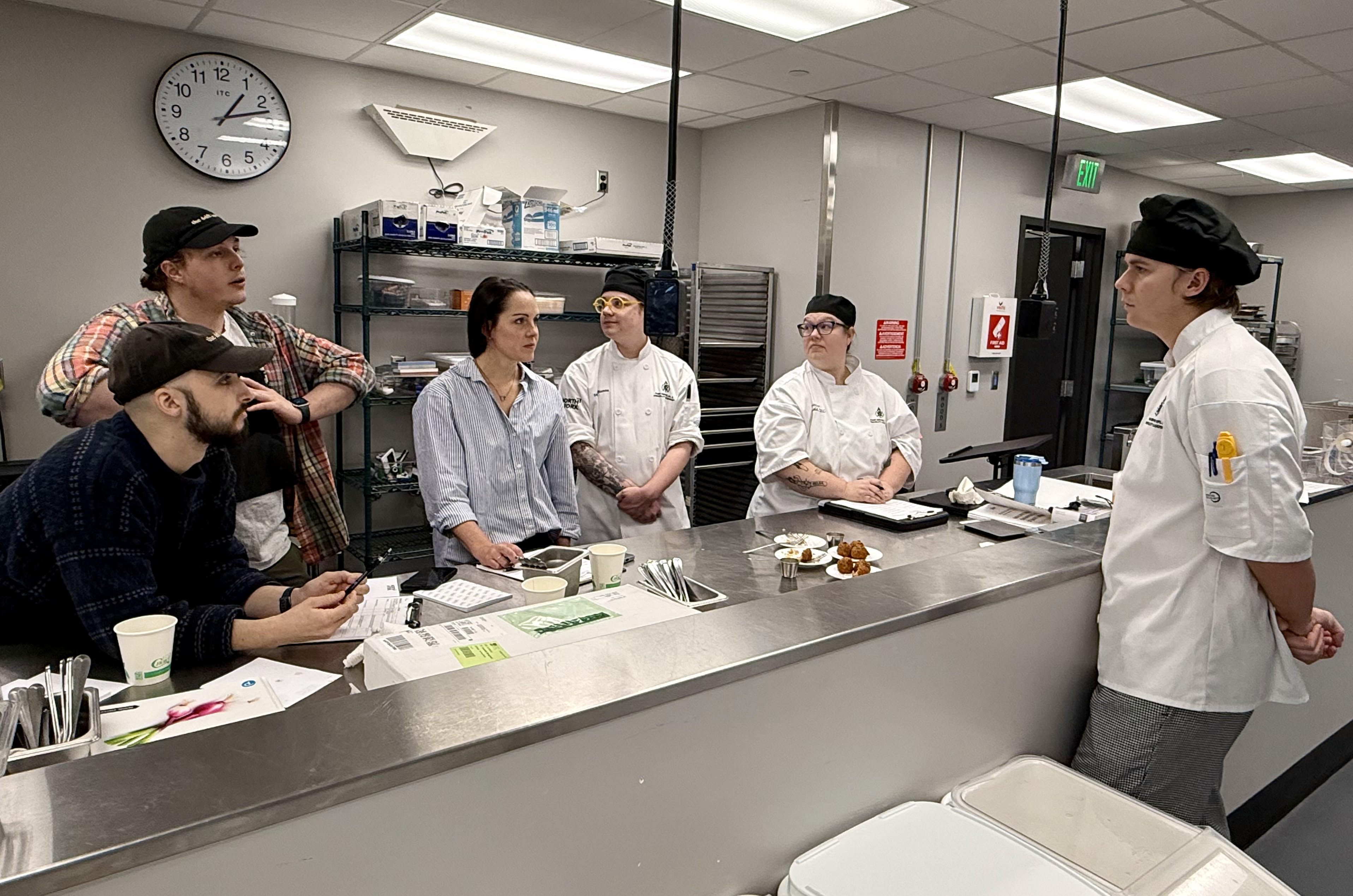 Northern Michigan University students had an opportunity to design and prepare original dishes that they recently presented to their professor and a team of alumni representing the Delft Bistro in downtown Marquette. The restaurant is running select creations as a special feature menu Dec. 1-28, and students whose dishes were chosen will receive a complimentary dinner at the Delft for themselves and a guest to celebrate their achievement alongside classmates.